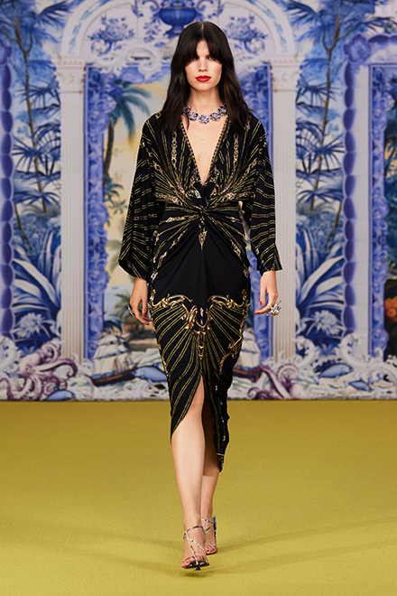 Designed in Australia, Baroque Around The Clock Long Split Front Twist Dress celebrates the architectural beauty of Portugal’s most stunning churches, evoking a sensory journey that blends memories and wanderlust into each hand illustrated design.