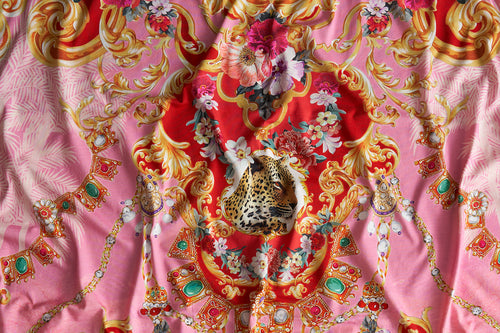 - Baby pink print with hints of red and gold