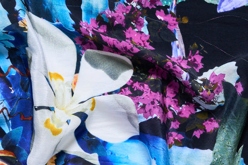 Elevated winter wear enveloped in moments of Pachamama, the Hypnotise Me Panelled Yoke Parka steals our gaze with deep midnight hues wrapped in slated bluebells, soft forest ferns and cascades of cacti. Crafted from a