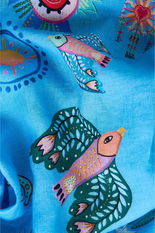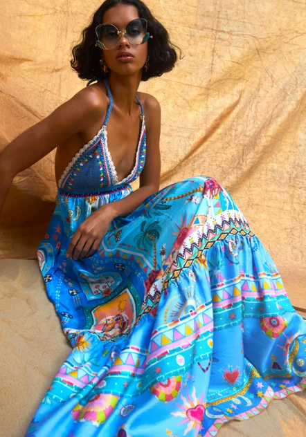 Designed in Australia, The A Painted Village Bandeau One Piece With Ring Trim greets you into a cacophony of cheerful chaos, where handpainted embroidery patterns gracefully embellish a delicate blue canvas. Lovingly handcrafted, this one-piece
