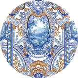 Designed in Australia, The Azul Adventures Button Front Frill Dress echoes the rich blue and yellow hues of Queluz Palace's artwork, featuring hand-painted motifs and scenes of Portuguese life, a tribute to Leho tilework and