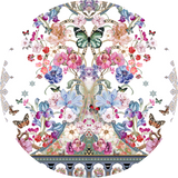 Designed in Australia, The Monserrate Magic Scrunchie With Trinket features a white base adorned with butterflies, leopards, and intricate details reflecting the palace's exotic gardens and eclectic architecture. Lovingly handcrafted, this luxury silk scrunchie showcases an elasticated body with a lavish tie detail. Adorned in a bespoke printed silk and finished with crystal embellishments, this designer hair accessory exudes unparalleled opulence.
