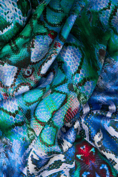 Designed in Australia, The Land Of Wonder Gather Neck Hardware Maxi Dress embodies a mystical fusion of snakeskin and oceanic hues, celebrating the art of rebirth and reinvention. Lovingly handcrafted, this luxury CAMILLA silk maxi dress features a bespoke hardware ring detail that creates a gathered neckline that falls into a relaxed A-line maxi silhouette. Adjustable straps and a back neckline allow for an opulently personalized fit.