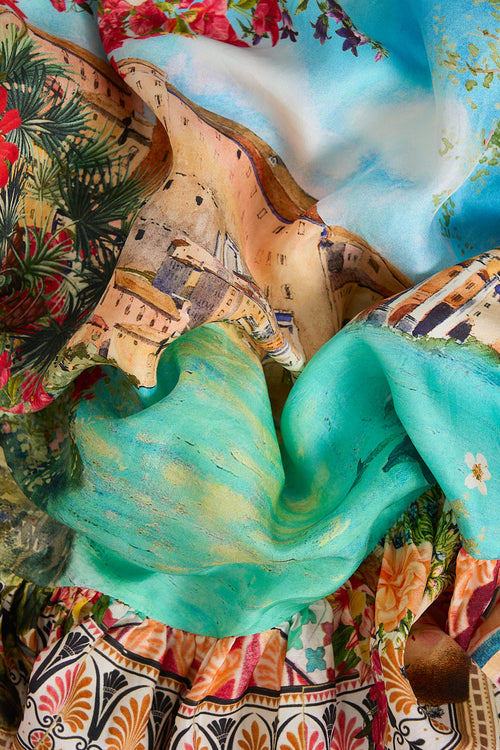 The Meet Me In Mallorca Small Canvas Clutch is a handcrafted silhouette designed by our in house artisans. Reimagined in an exclusive limited edition print, meticulous artisan detail meets our signature canvas clutch as finishings incorporate contrast piped edges, meticulously placed crystal embellishments, zip top enclosure and a custom made parrot clip. Internal pocket and generous main compartment keep treasures stored in style.