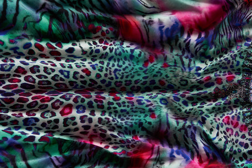 Divinely printed with leopard patterns infused with vivid green and vibrant purple hues, the Mighty Meow Split Pocket Dress draws on Camilla’s past travel journey. This silk maxi dress styles a sumptuous front split and