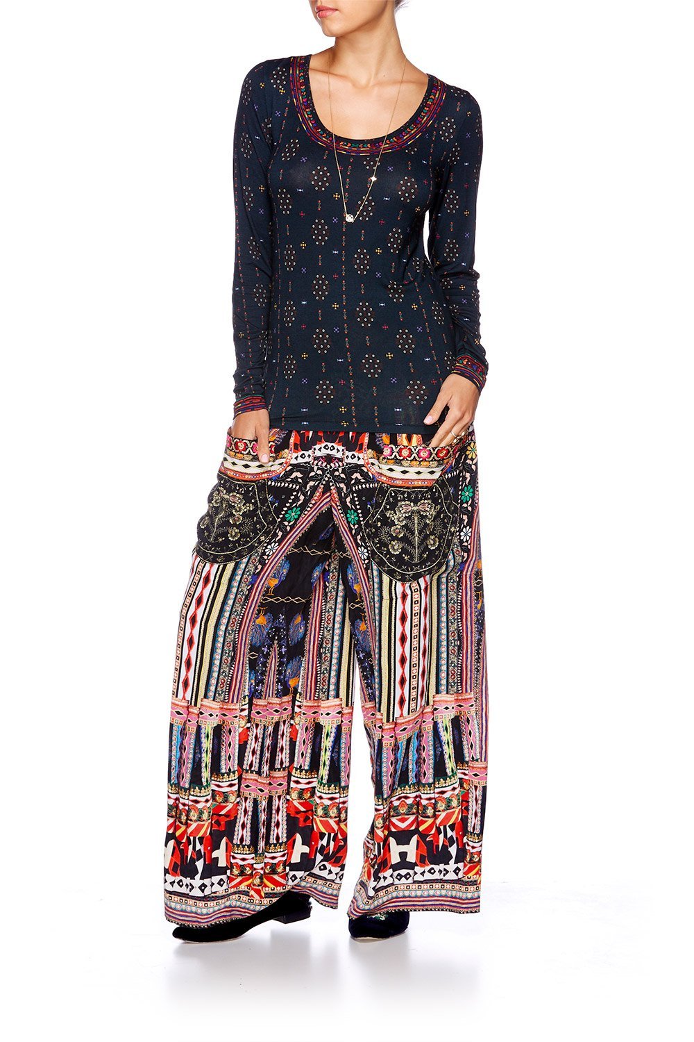 A spirited tribute to Camilla’s lifelong connection with music and dance, the Songs On The Lawn Top evokes the intricate beEUty of ancient Indian folklore in an opulent, one-of-a-kind print. This fitted-style top has been crafted from a comfortable printed stretch fabric and features a flattering scoop neck and full length sleeves. Layer under your favourite bohemian styles or wear on its own with a luxurious printed legging to awaken the warrior spirit within.