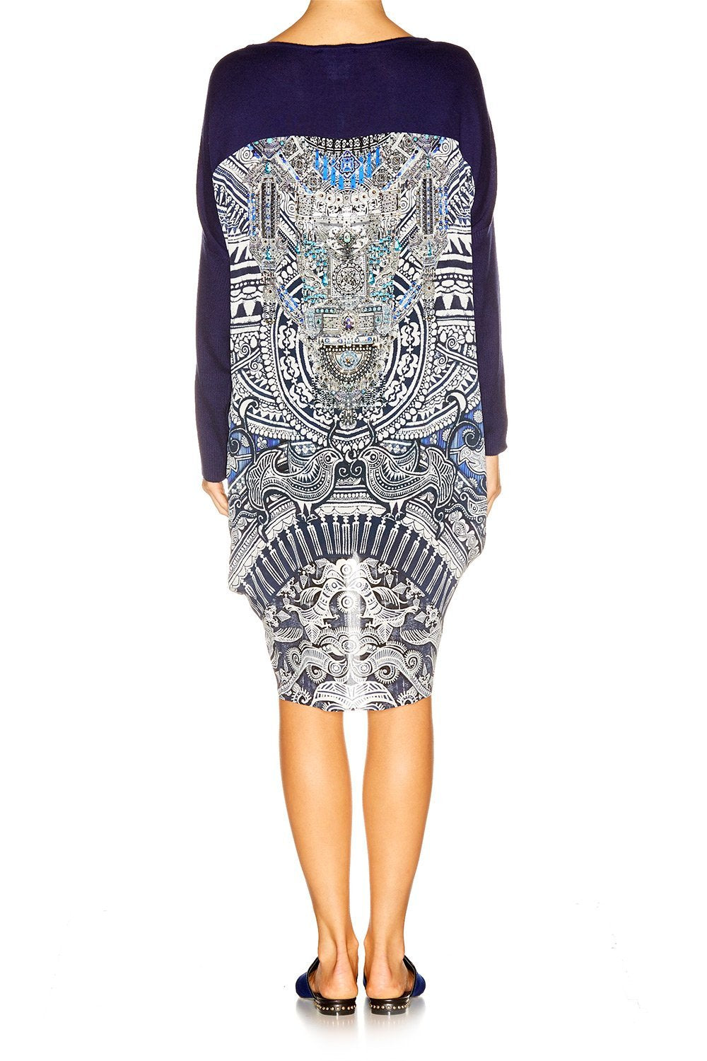 Cut from a luxurious blend of premium cotton, silk and cashmere, the Long Sleeve Jumper with Print Back in our contemporary Small Town Hero Print will make a versatile addition to your cold-weather wardrobe. Promising cosy comfort with every wear, this relaxed, whimsical jumper is adorned with hand-applied crystal embellishments and features a plain front body and sleeves with a contrast print back. Inspired by the integrity and dedication of Batik artists, this free-spirited staple is the perfect companion to knit leggings for the epitome of off-duty styling.