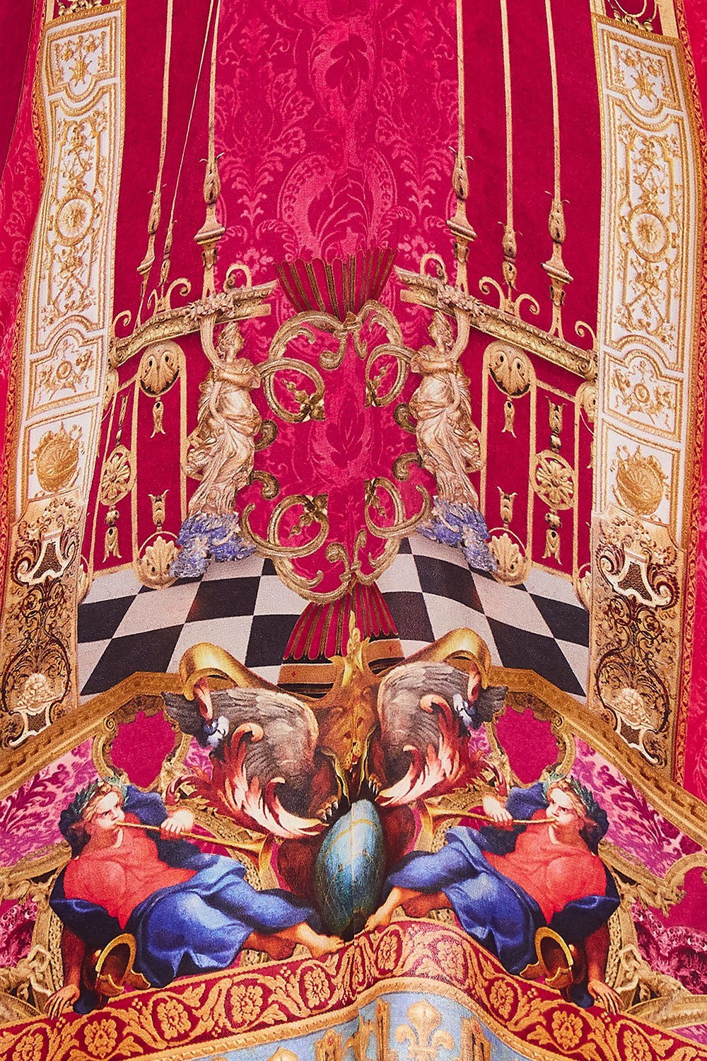 Inspired by the royal detailing of the Palace of Versailles, the Lounge Hour Short Kaftan with Hardware is equal parts sunny and sumptuous. This romantic V-necked dress features gathered décolletage detailing, strategically split sleeves, and a crystal embellished neckline.