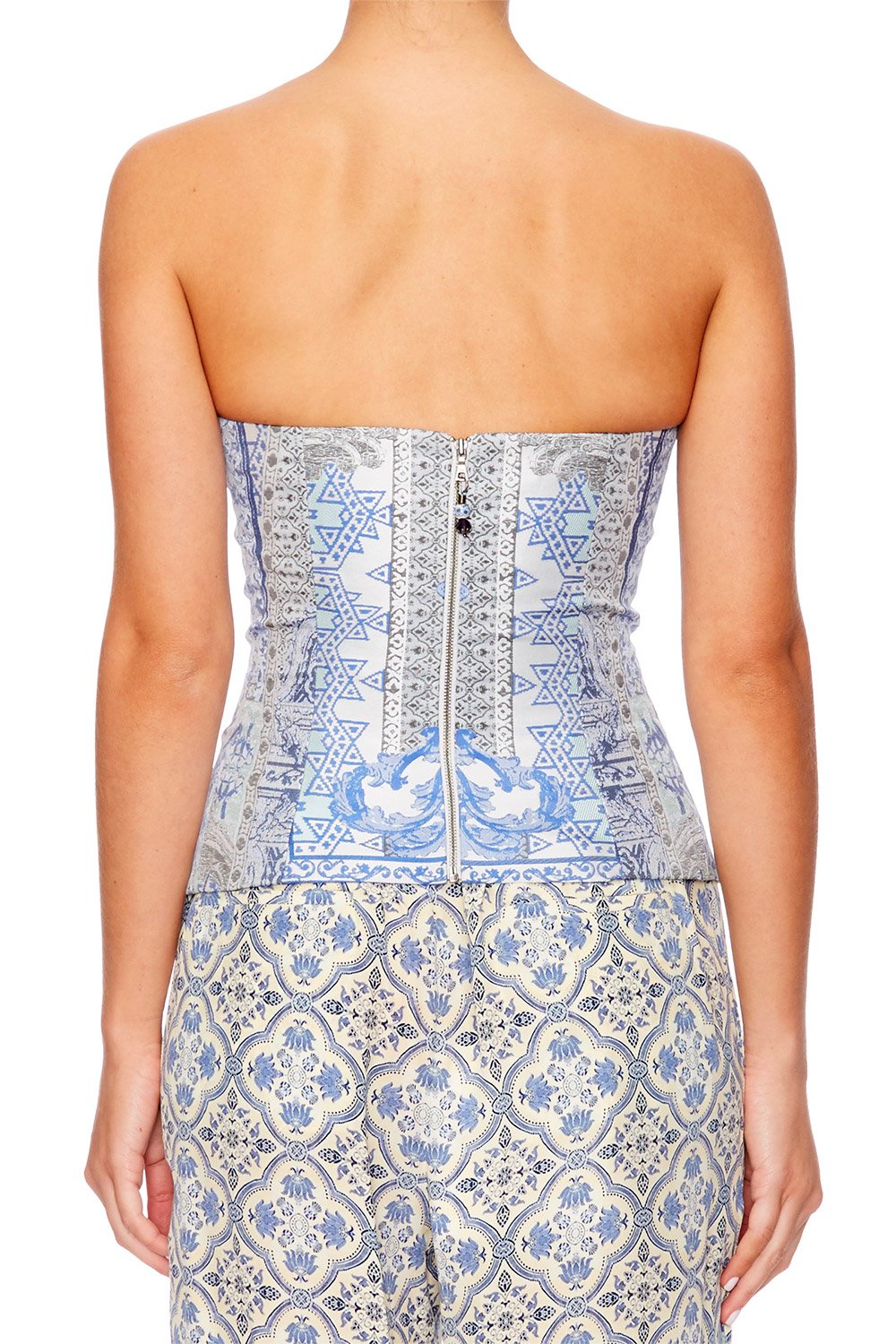 - This striking corset offers a polished, elegant silhouette with every wear - Pair with wide-leg pants with split and heels for an ultra-flattering shape with just the right amount of drama - Crystal embellishment