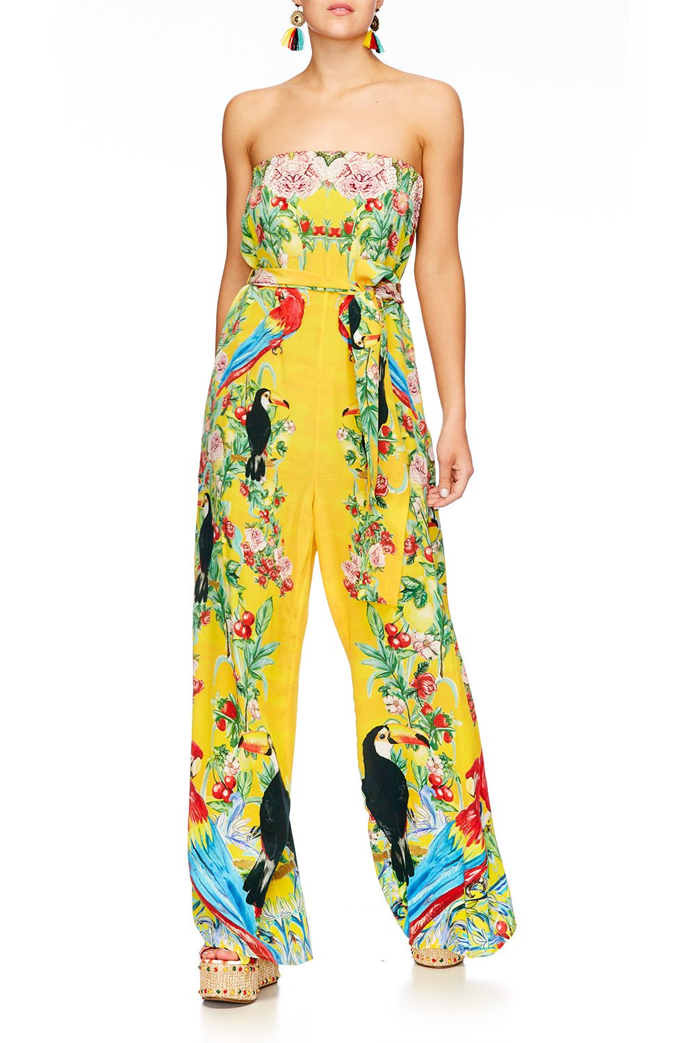 tie waist strapless jumpsuit